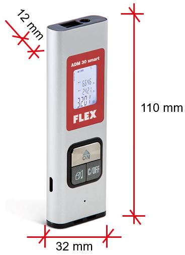 Denna ADM 30 Smart avståndsmätare är en fjäderlätt och smidig enhet som erbjuder enkel enhandsmanövrering med endast en knapp för mätning. Den hanterar en rad mätfunktioner, inklusive längd, yta, volym och indirekta mätningar.