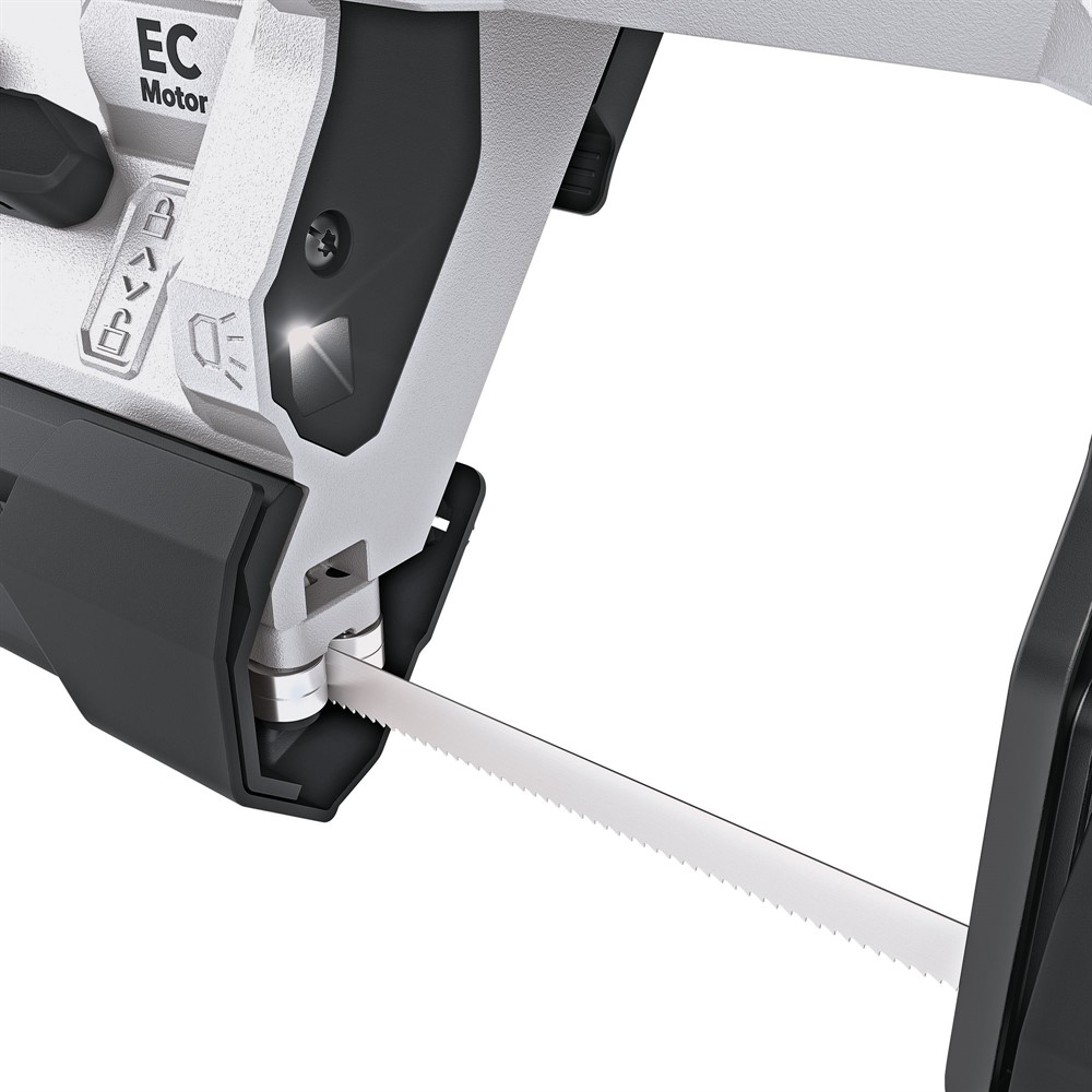 En borstlös motor garanterar ökad effektivitet och en längre livslängd. Den reglerbara bandhastigheten möjliggör perfekt sågning i olika material. Sågbandsbytet är verktygslöst, och ett extra sågbandsskydd bidrar till säkrare användning.