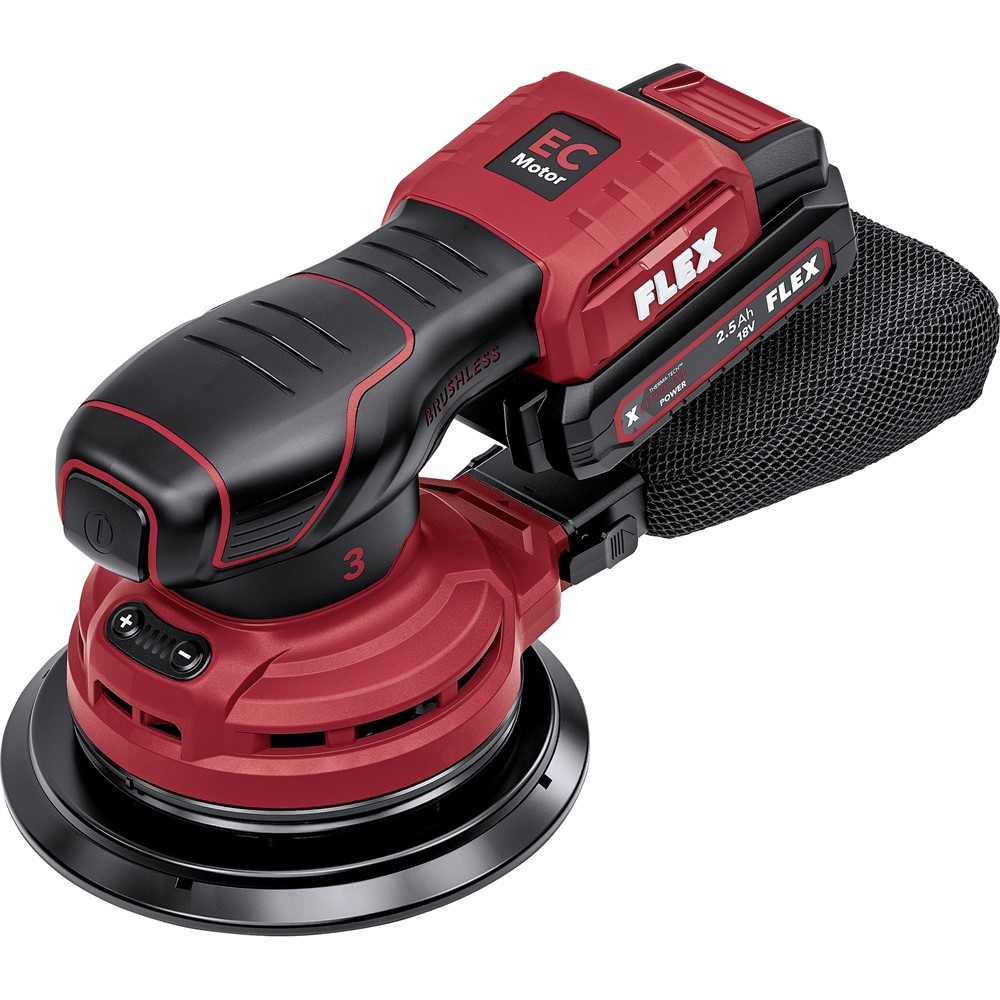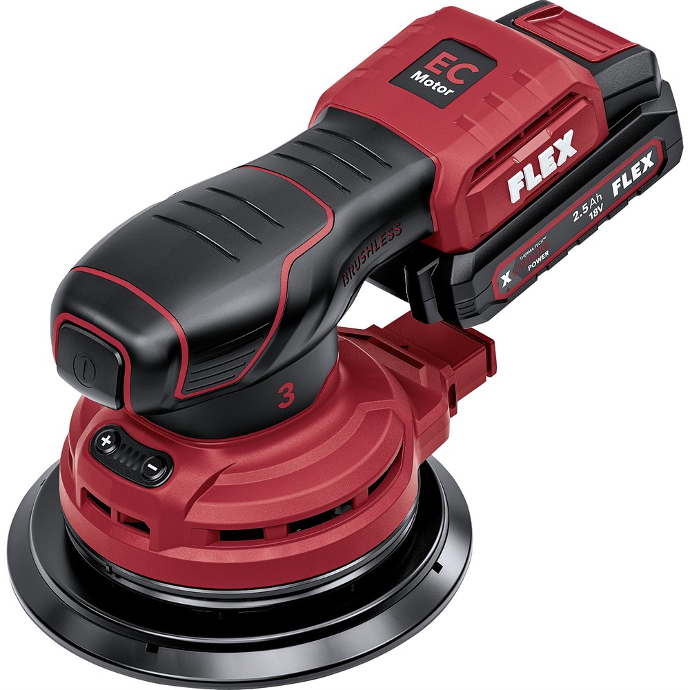 Excenterslipen drivs av en borstlös motor som säkerställer ökad effektivitet och en avsevärt längre livslängd. Det elektroniska styrsystemet (EMS) skyddar maskinen, förlänger livslängden och ökar den totala effektiviteten. En praktisk LED-display visar aktuell batterikapacitet. Denna maskin ingår i FLEX batterisystem och är lämplig för FLEX 18,0 V/5,0/2,5 Ah batterier. Observera att leverans sker utan batteri och snabbladdare.
