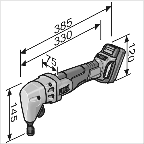 Nibblaren har en skyddad, låsbar på/av-knapp. En LED-display visar aktuell batterikapacitet. Den är en del av FLEX batterisystem och är kompatibel med alla FLEX 18 V batterier.