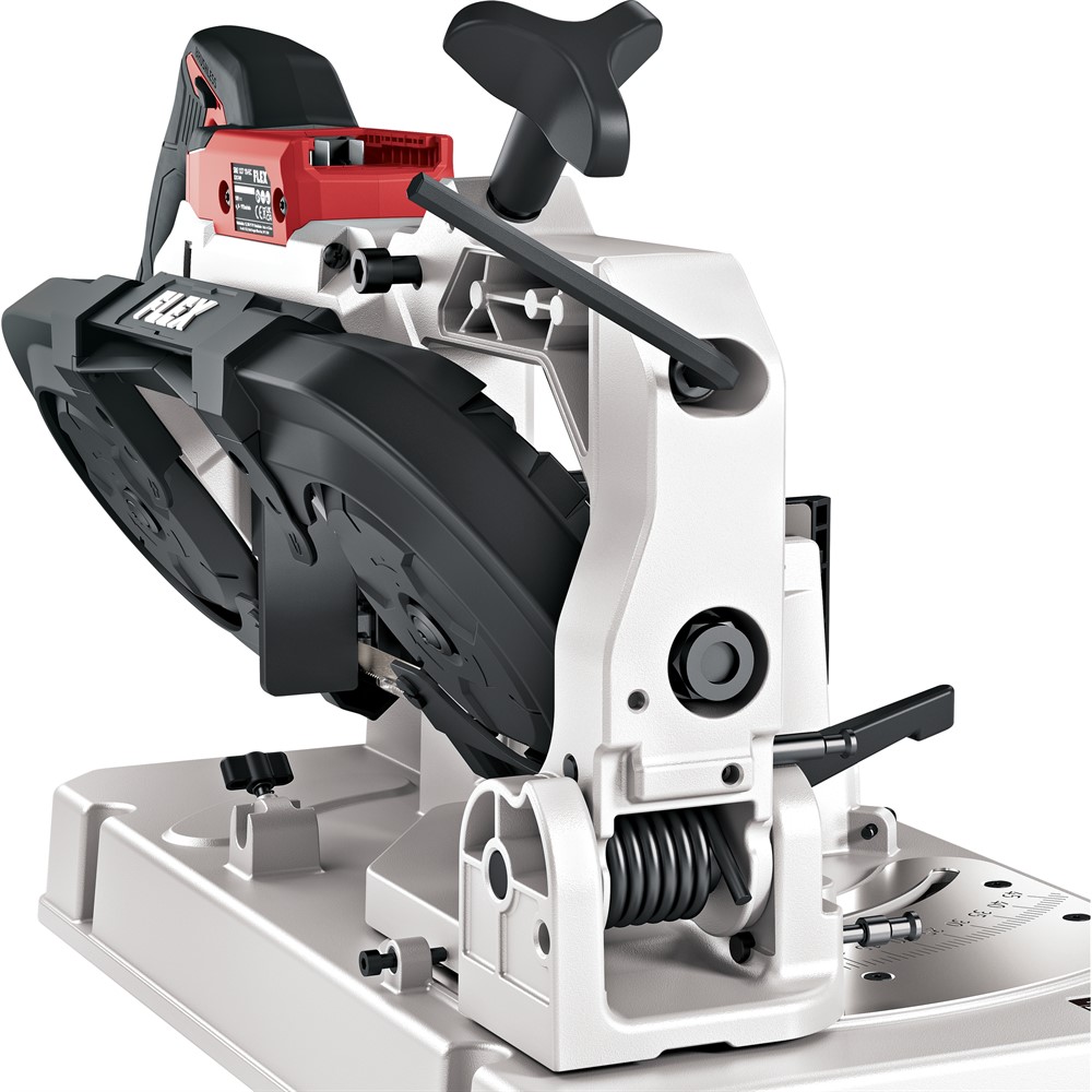 Montering sker smidigt med en stor vridknapp och spännspak, vilket möjliggör snabb och säker fixering av sågen.