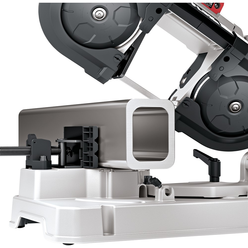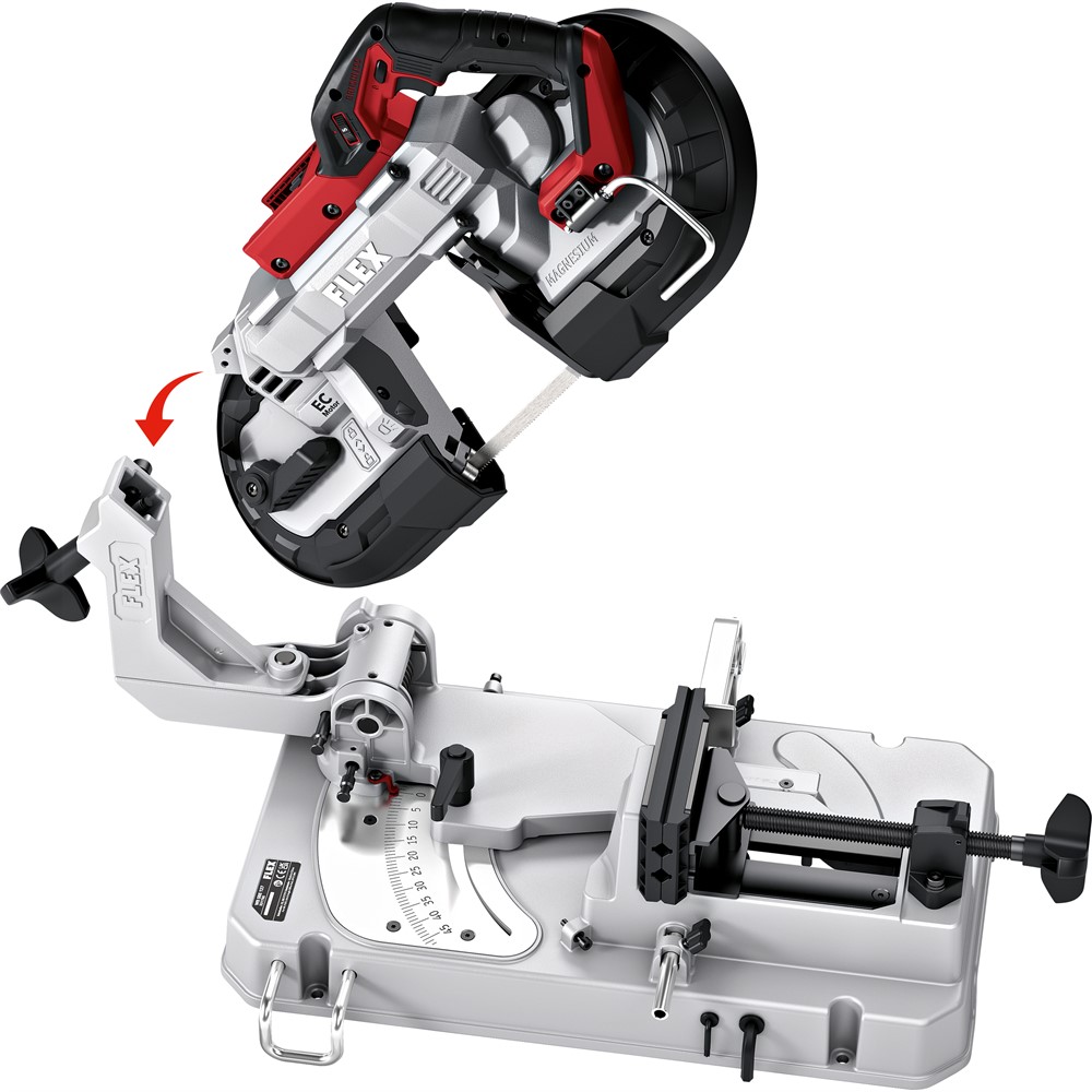 Denna konfiguration optimerar arbetet med den batteridrivna bandsågen, vilket gör processen både mer exakt och hanterbar.
