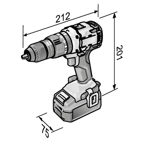 Maskinen har en steglös brytare med spärrknapp och ett elektroniskt snabbstopp. Det robusta huset är tillverkat av gjutaluminium. Snabbchucken är av metall, försedd med skyddsring och automatlåsfunktion för säkra och snabba verktygsbyten. Höger- och vänsterrotation hanteras enkelt med en säkerhetsspärr.
