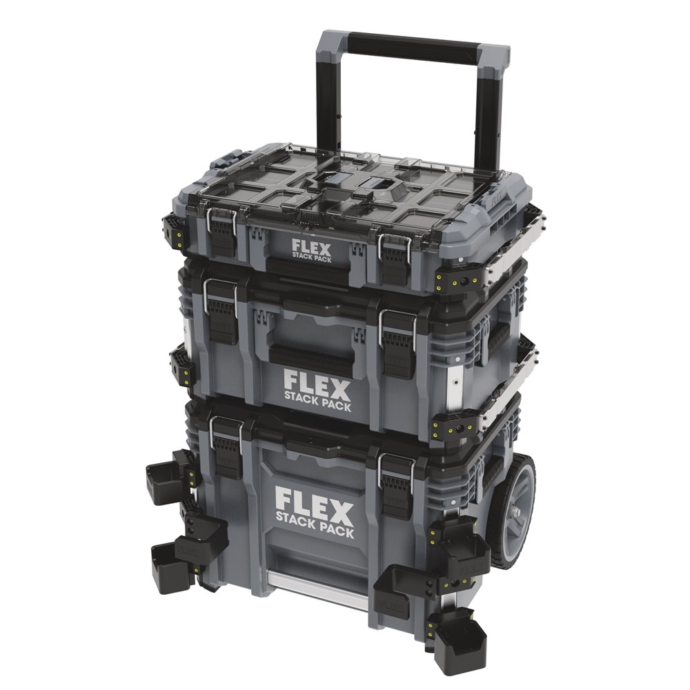 Med det robusta STACK PACK förvarings- och transportsystemet blir det enkelt att transportera dina verktyg och tillbehör till och från arbetsplatsen. Boxarna, tillverkade av slagtålig plast och förstärkta med aluminiumhörn, erbjuder ett utmärkt skydd för ditt material även under de mest krävande förhållandena på byggarbetsplatsen.