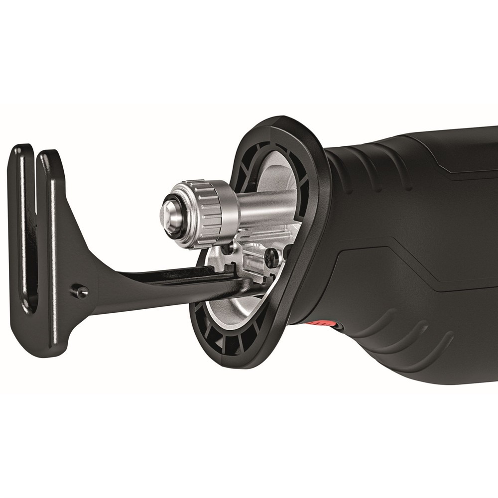 Verktygsfritt sågbladbyte med utstötningsfunktion gör att sågbladet enkelt avlägsnas från fästet. Det universella sågbladsfästet underlättar snabba bladbyten. Steglös pendelinställning från 0-3 mm, justerbar via ett vridreglage, är särskilt lämplig för snabb sågning i trä. Sågbladet kan även vridas 180°.